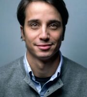 A man wearing sunglasses is intently focused on a slot machine, with colorful lights and graphics illuminating the screen. The scene is set indoors, likely in a casino or gaming area. His attire includes a patterned shirt and a blazer.